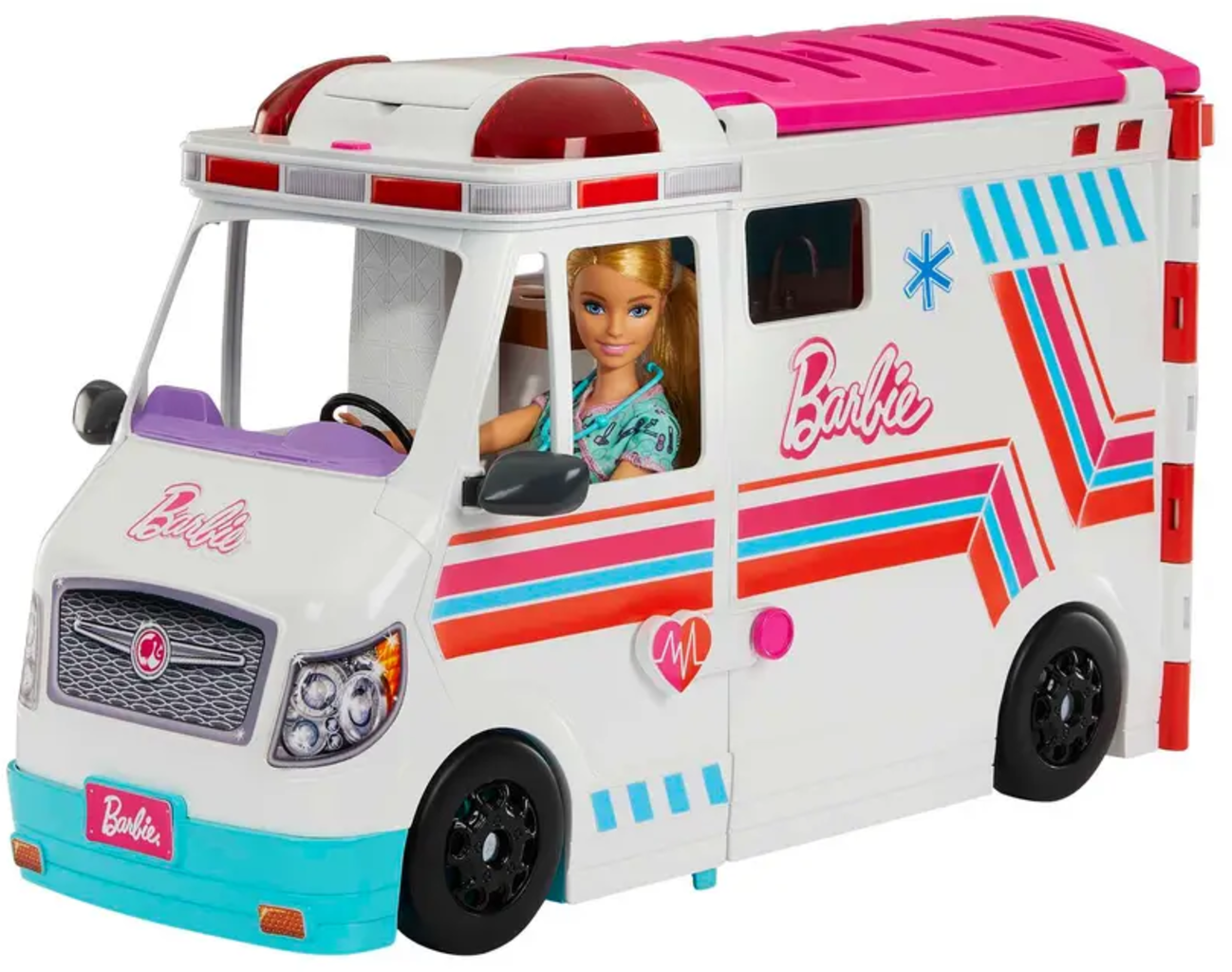 Con questo playset Barbie ricostruibile, le bambine scoprono il loro lato premuroso! L'ambulanza 2 in 1 si trasforma da veicolo di emergenza con luci e suoni in un ospedale completamente attrezzato con sala visite, reception e sala d'attesa.