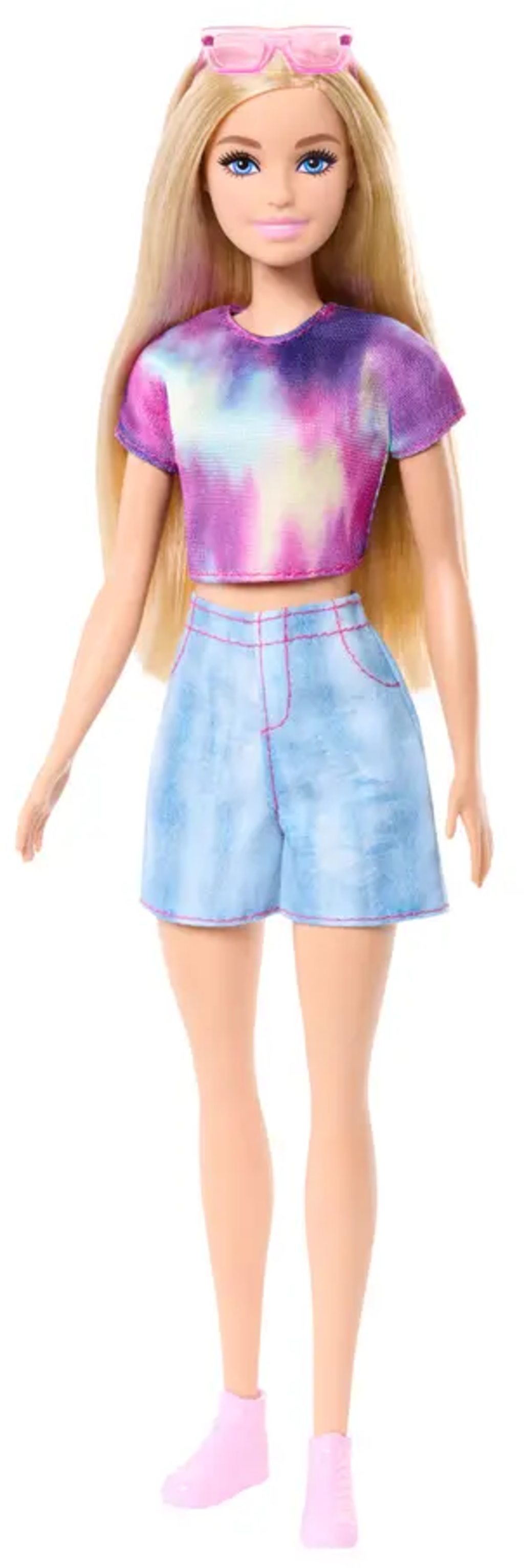 Con la bambola Barbie Malibu, ispirata alla serie Barbie Mysteries: Detective da Spiaggia, le bambine possono immergersi in emozionanti storie poliziesche. Il suo caratteristico top tie-dye, i pantaloncini di jeans casual con cuciture rosa, le sneaker alte e gli occhiali da sole coordinati rendono Barbie Malibu immediatamente riconoscibile. I suoi lunghi capelli biondi con riga laterale completano perfettamente il look. Con questa bambola, le piccole detective possono ricreare scene o inventare nuove storie, per un gioco creativo senza fine.
