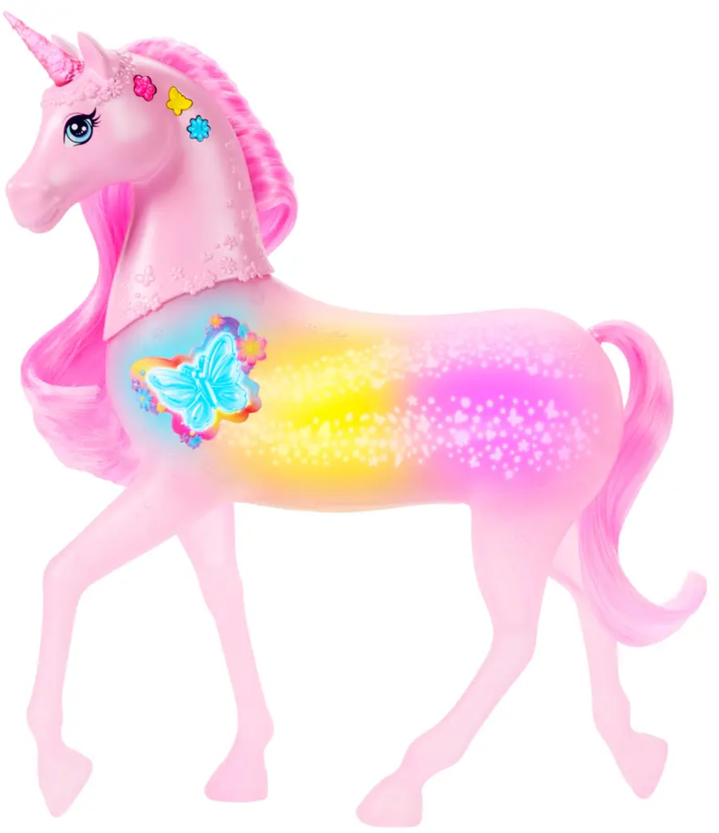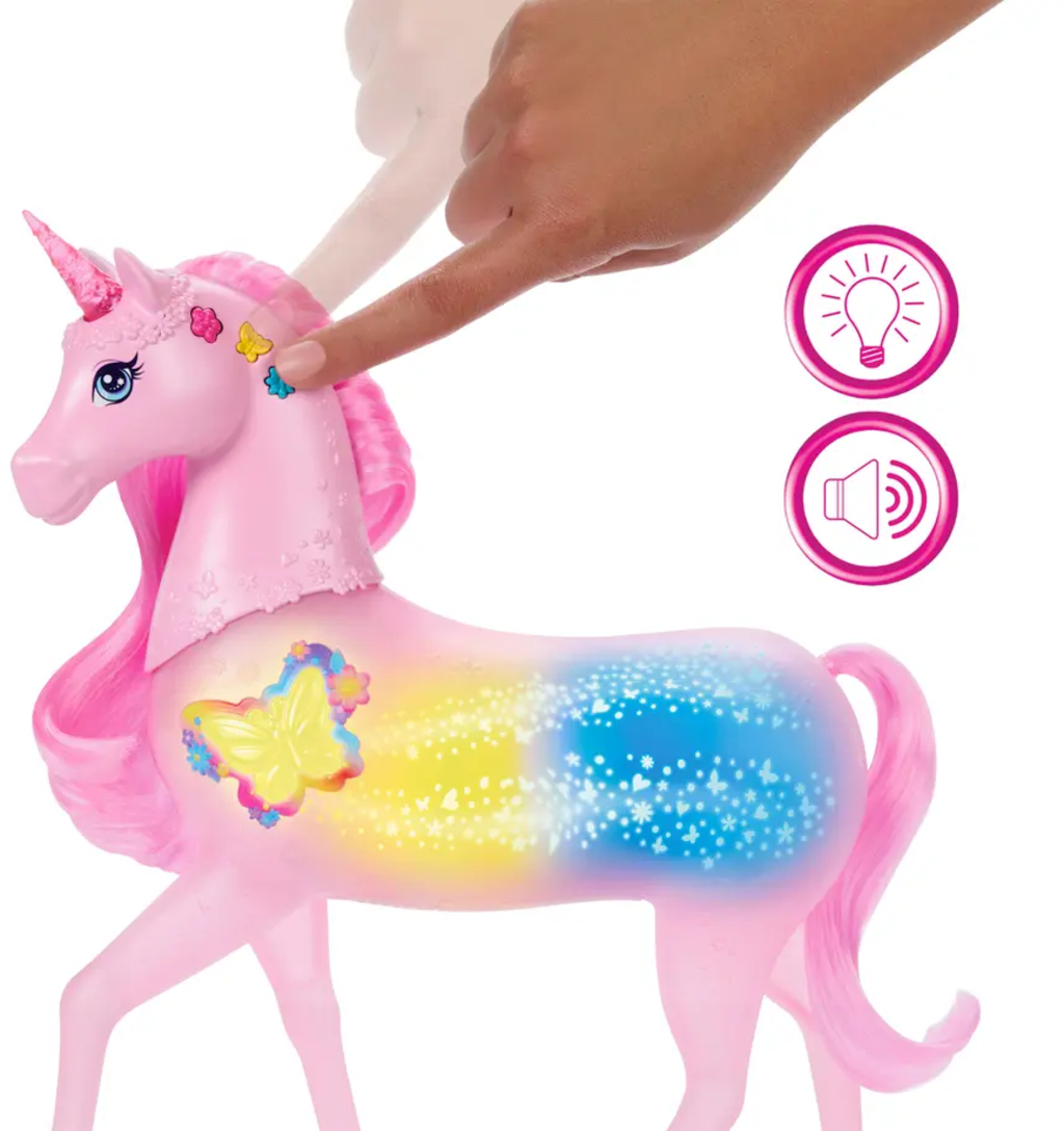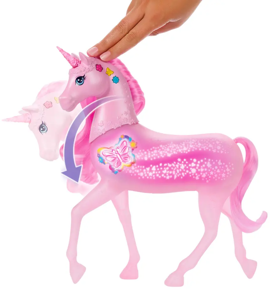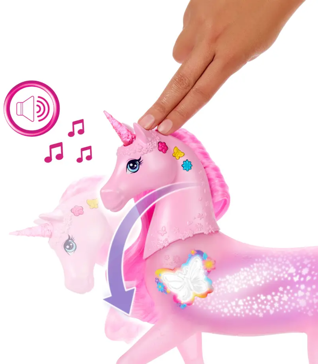 Barbie Unicorno scintillante con 20 combinazioni interattive di luci, suoni e musica
