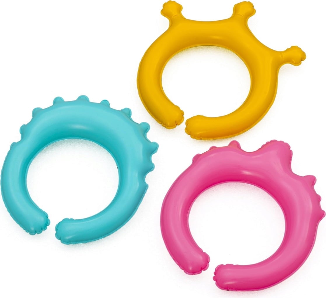 - Con 6 palline e 3 anelli da lancio gonfiabili.