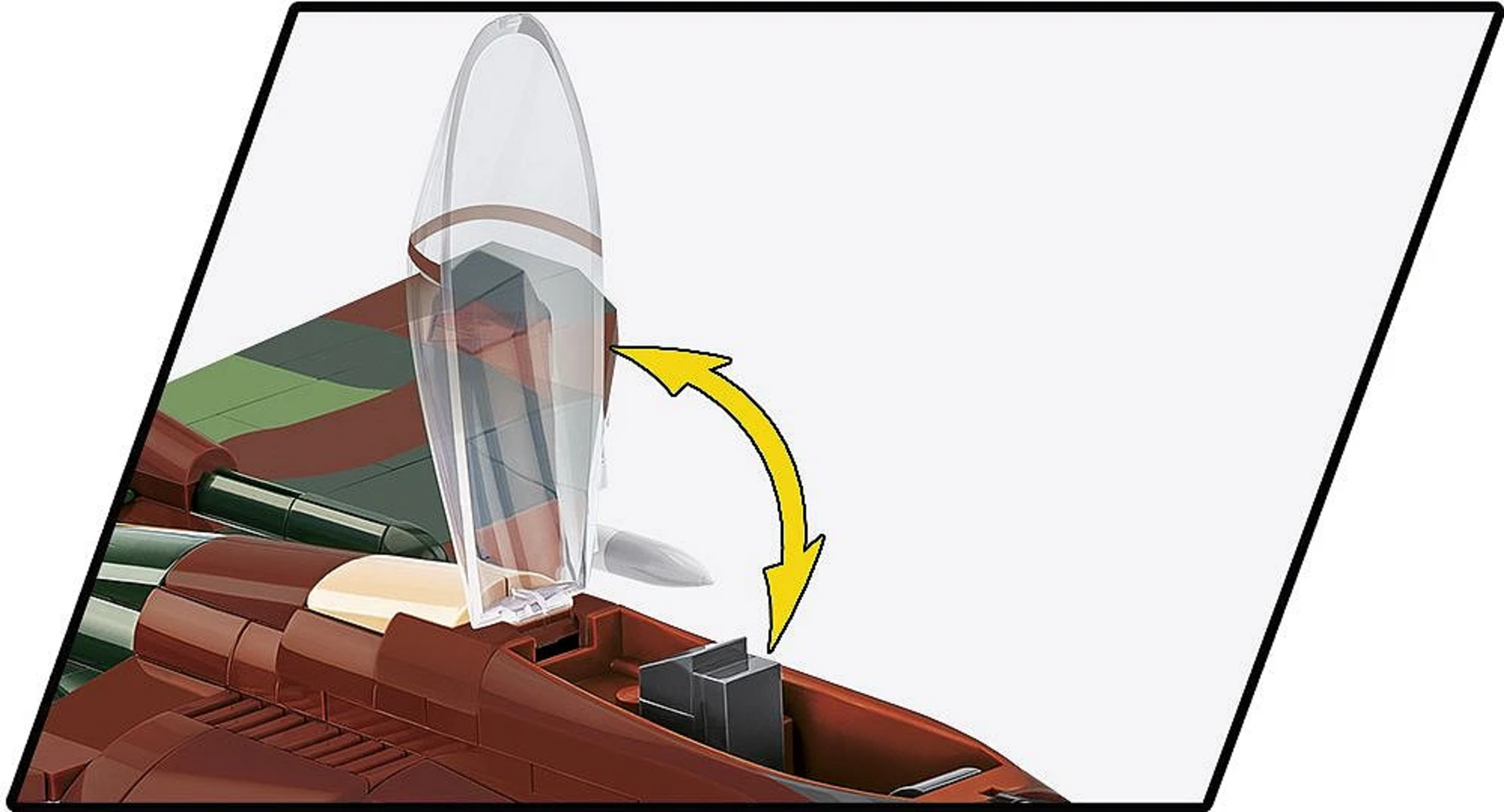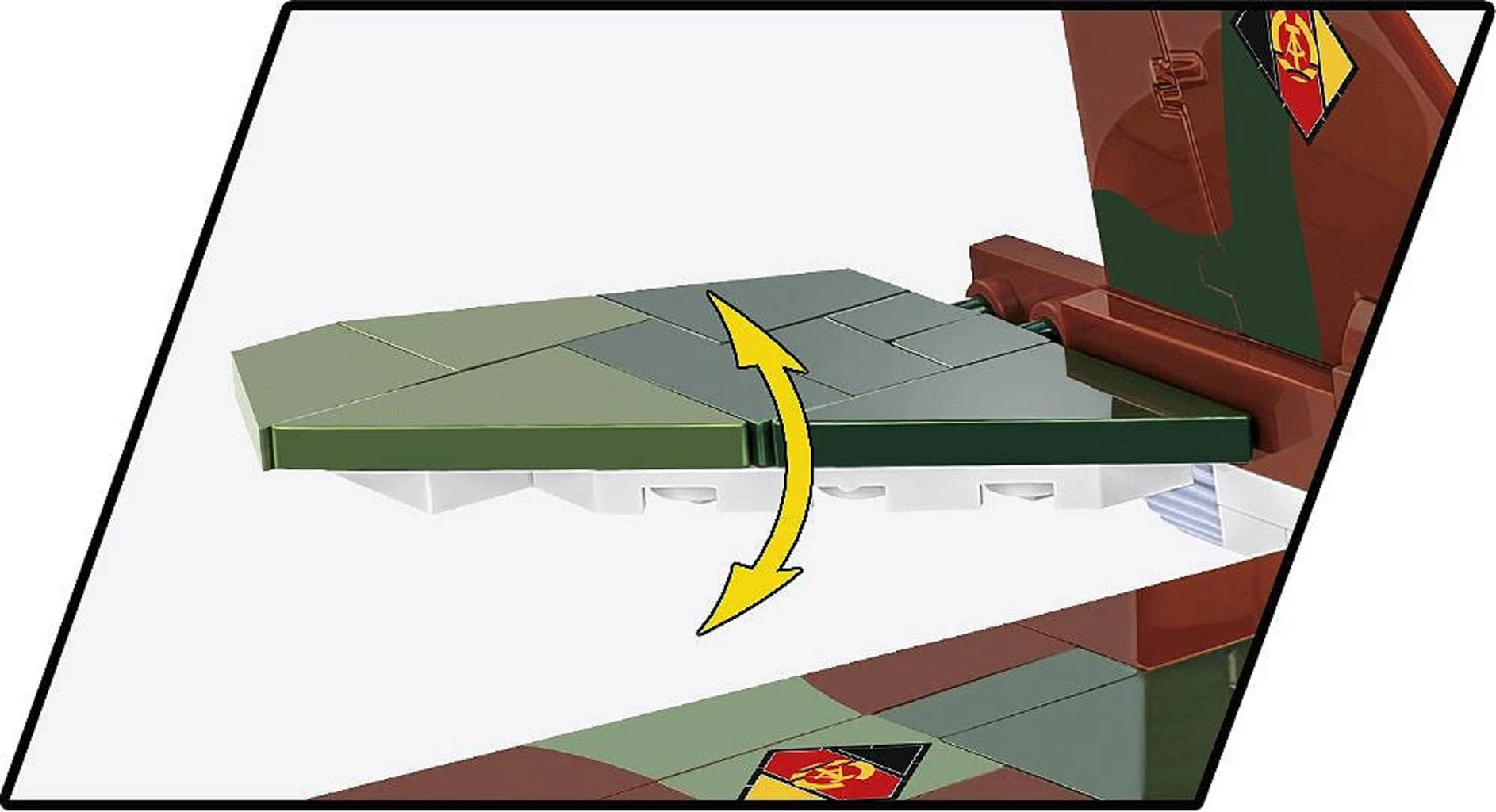 A te la scelta: usa il carrello di atterraggio rimovibile per decolli rapidi dal tappeto o esponi elegantemente il tuo intercettore lungo 35,5 cm sul supporto espositivo incluso con targhetta. Grazie alla stampa di alta qualità direttamente sui 545 mattoncini, l'aspetto storico rimane intatto anche dopo un gioco intenso.