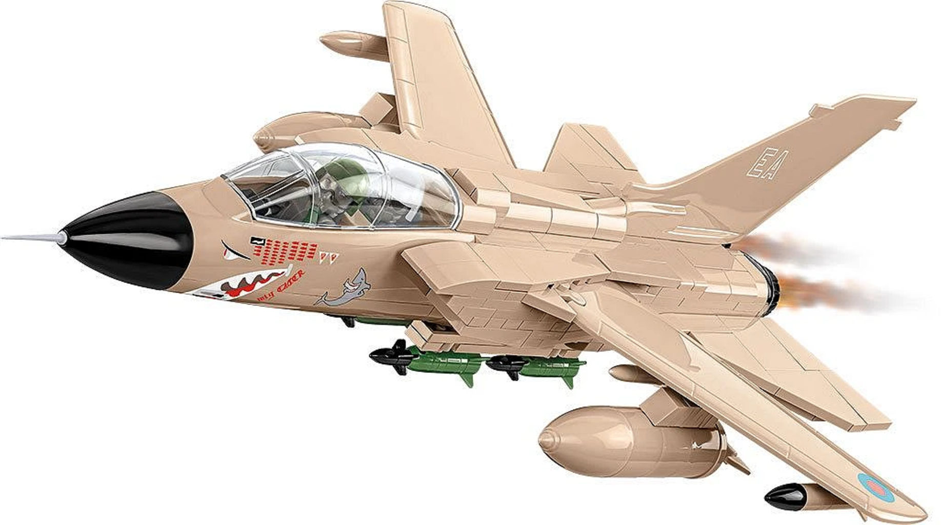 I due piloti inclusi si inseriscono nella cabina di pilotaggio apribile, mentre il carrello di atterraggio rimovibile ti permette di decidere se ti trovi nel bel mezzo di una manovra di volo o se vuoi esporre con orgoglio il Tornado sul supporto incluso.