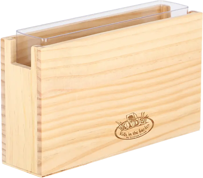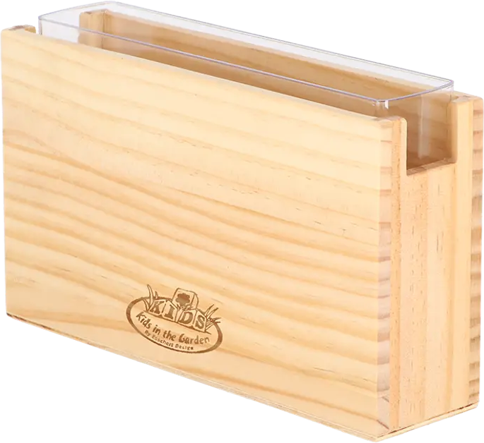 Una stazione di osservazione delle radici che permette ai bambini di scoprire da vicino i segreti della natura, osservando la crescita delle radici in tempo reale grazie all'inserto trasparente rimovibile.