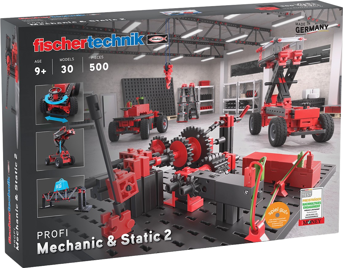 Il Baukasten PROFI Mechanic & Static 2 è perfetto per chi vuole scoprire meccanica e statica in modo concreto. Con 30 modelli tra cui giunto cardanico, cambio e sistema planetario bambini e ragazzi imparano le basi dell'ingegneria meccanica. Le istruzioni dettagliate e il portale eLearning offrono video e spiegazioni che rendono la tecnica chiara e accessibile. Un set ideale per stimolare l'interesse verso le scienze ingegneristiche e sviluppare una solida comprensione dei principi tecnici.