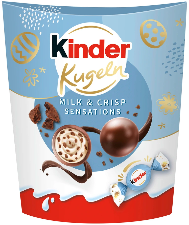 Le palline di cioccolato Latte e Crisps di Kinder uniscono un delicato guscio di cioccolato al latte a un ripieno di crema di latte e croccanti pezzetti di cialda al cacao. Inutile dire che una tira l'altra!