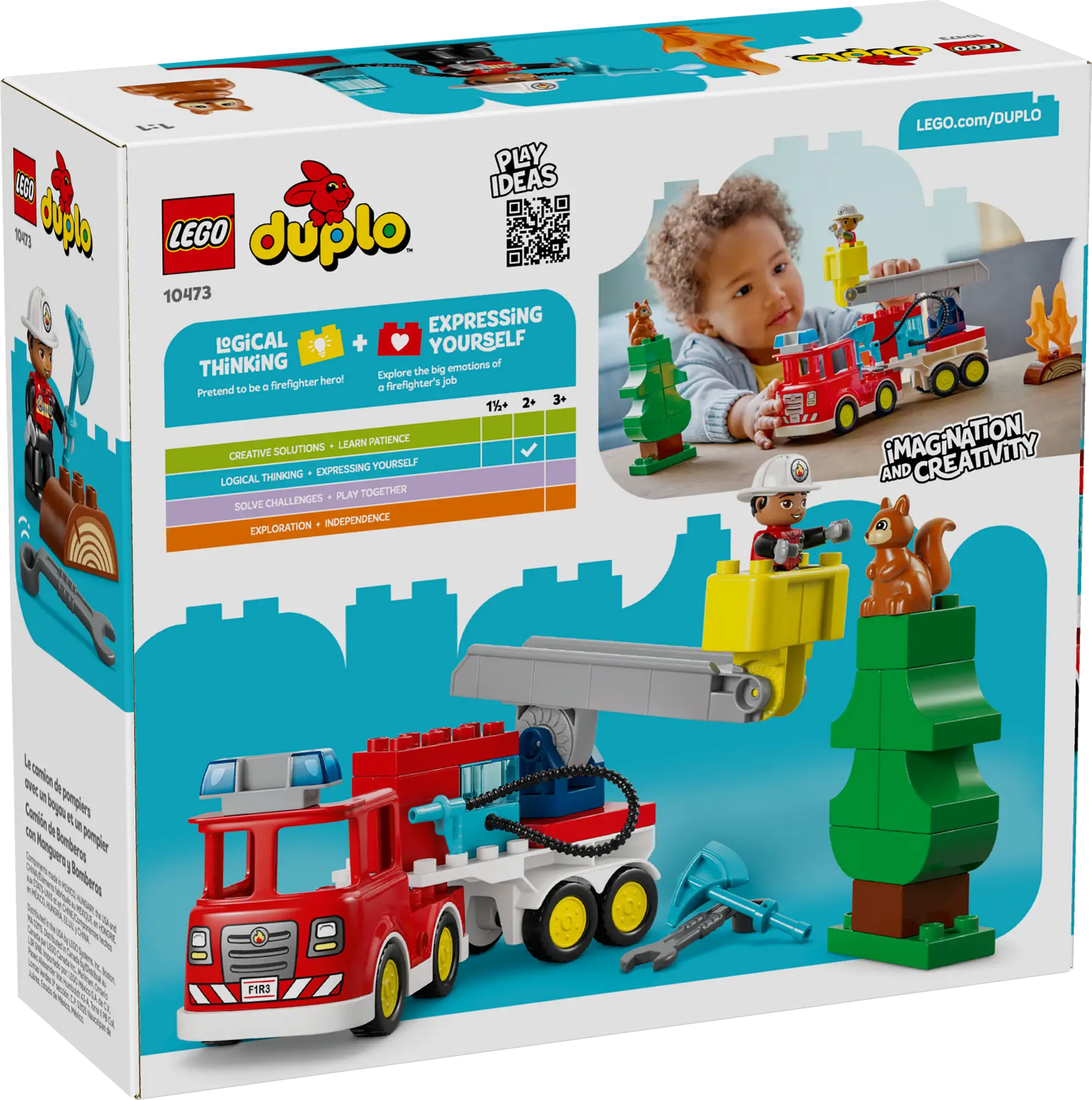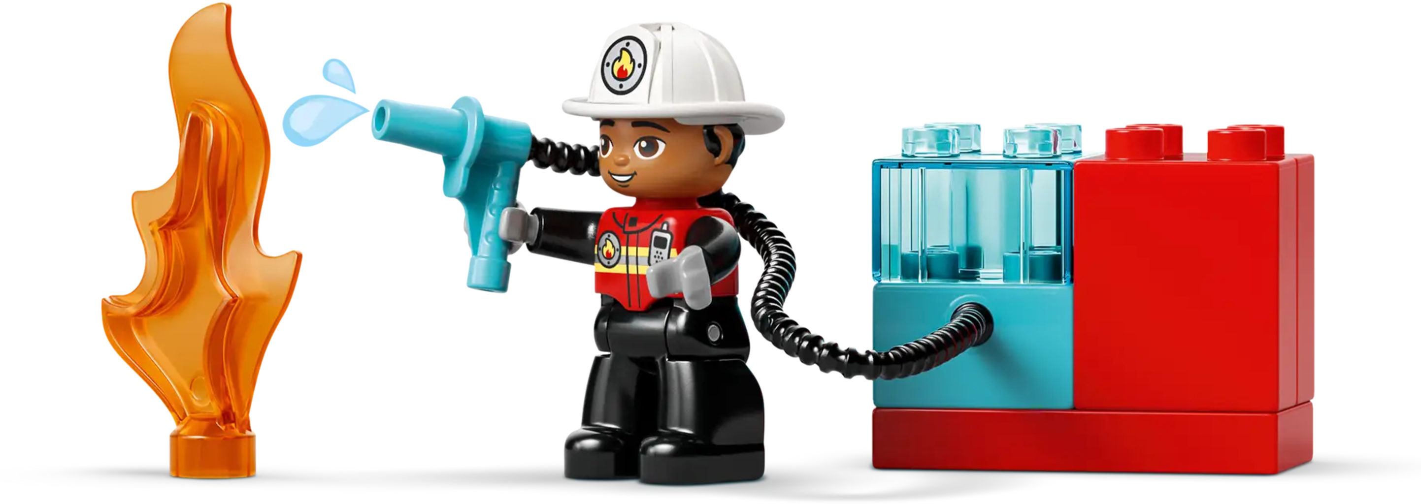 Set LEGO DUPLO Autopompa con manichetta e pompiere per bambini dai 2 anni, pensato per il gioco di finzione e lo sviluppo delle competenze prescolari. Il camion dei pompieri con scala mobile, manichetta flessibile e personaggi stimola l’immaginazione, l’empatia e le capacità motorie attraverso storie di soccorso ispirate alla vita quotidiana.