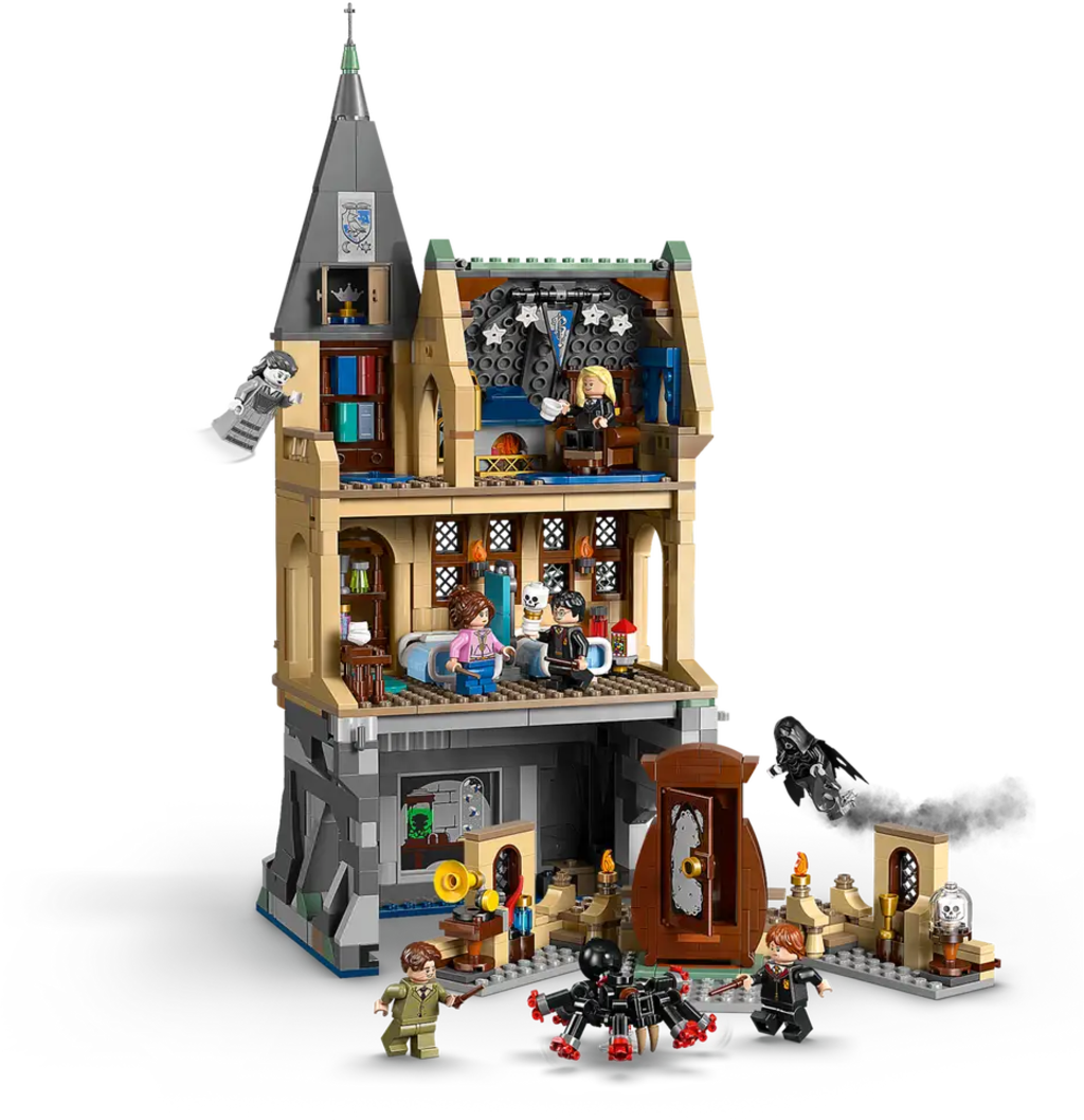 Replica dettagliata dell'edificio a 3 piani, inclusi l'ala dell'ospedale, l'aula rimovibile di Difesa contro le Arti Oscure, l'ala dell'ospedale e la sala comune di Corvonero.