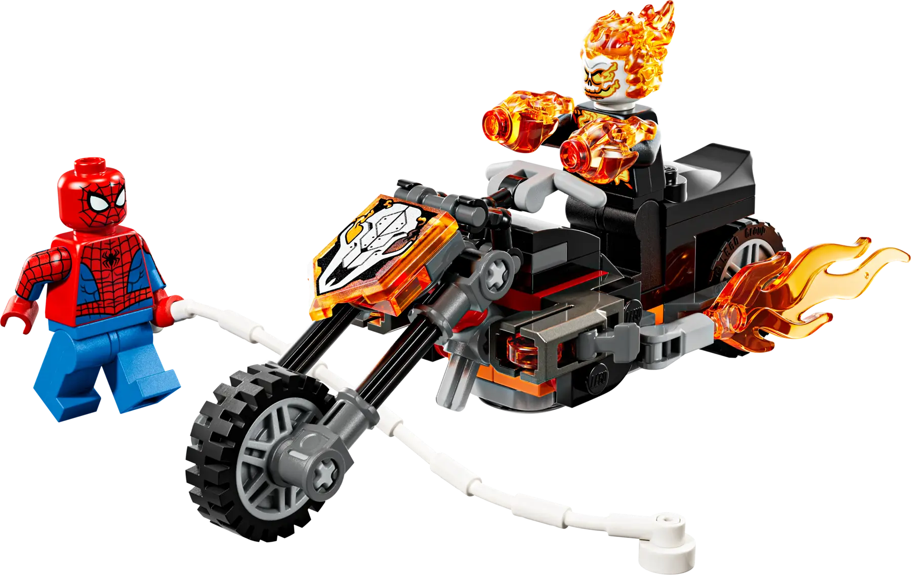 Scatena inseguimenti infuocati con questo set LEGO® Marvel ricco di azione. Include le minifigure di Spider-Man e Ghost Rider e una motocicletta fiammeggiante con shooter integrati e dettagli iconici, per avventure dinamiche e gioco di fantasia dai 6 anni in su.