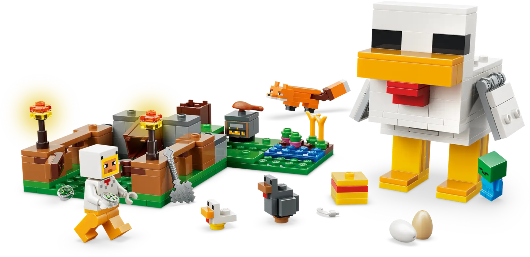 Set LEGO Minecraft Fattoria di galline per bambini dai 7 anni, con pollaio costruibile ricco di funzioni divertenti e personaggi iconici del gioco. Include animali, accessori e una minifigure per stimolare il gioco di ruolo e ricreare avventure Minecraft nel mondo reale.