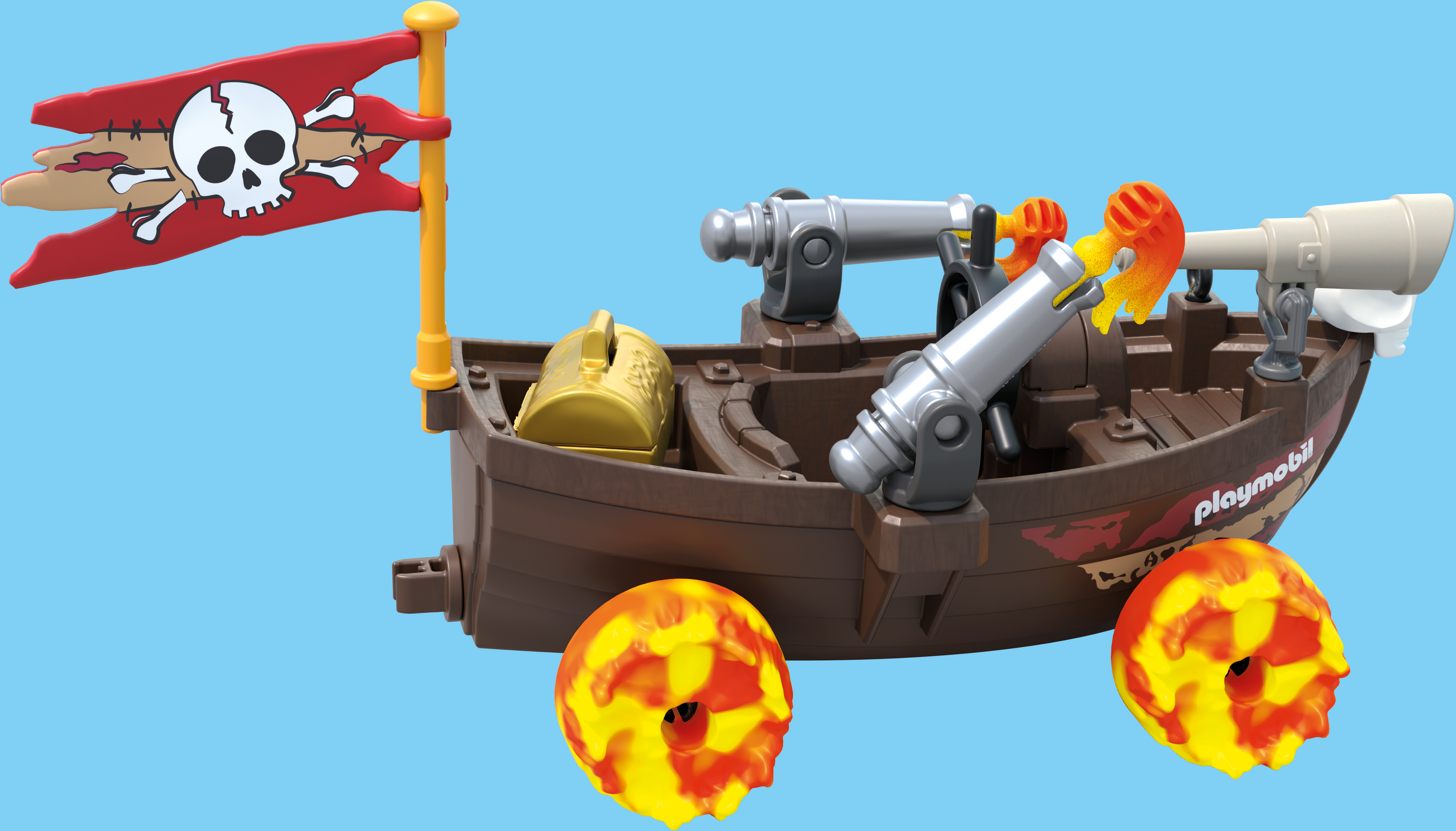 Con il set "Racing Barca dei Pirati" di PLAYMOBIL Funstars, ogni viaggio è una caccia al tesoro! Due cannoni, quattro ruote di fuoco e un coraggioso pirata con cannocchiale trasformano le avventure per terra e per mare in un divertimento ricco di azione. Ideale per piccoli bucanieri dai 4 anni in su.