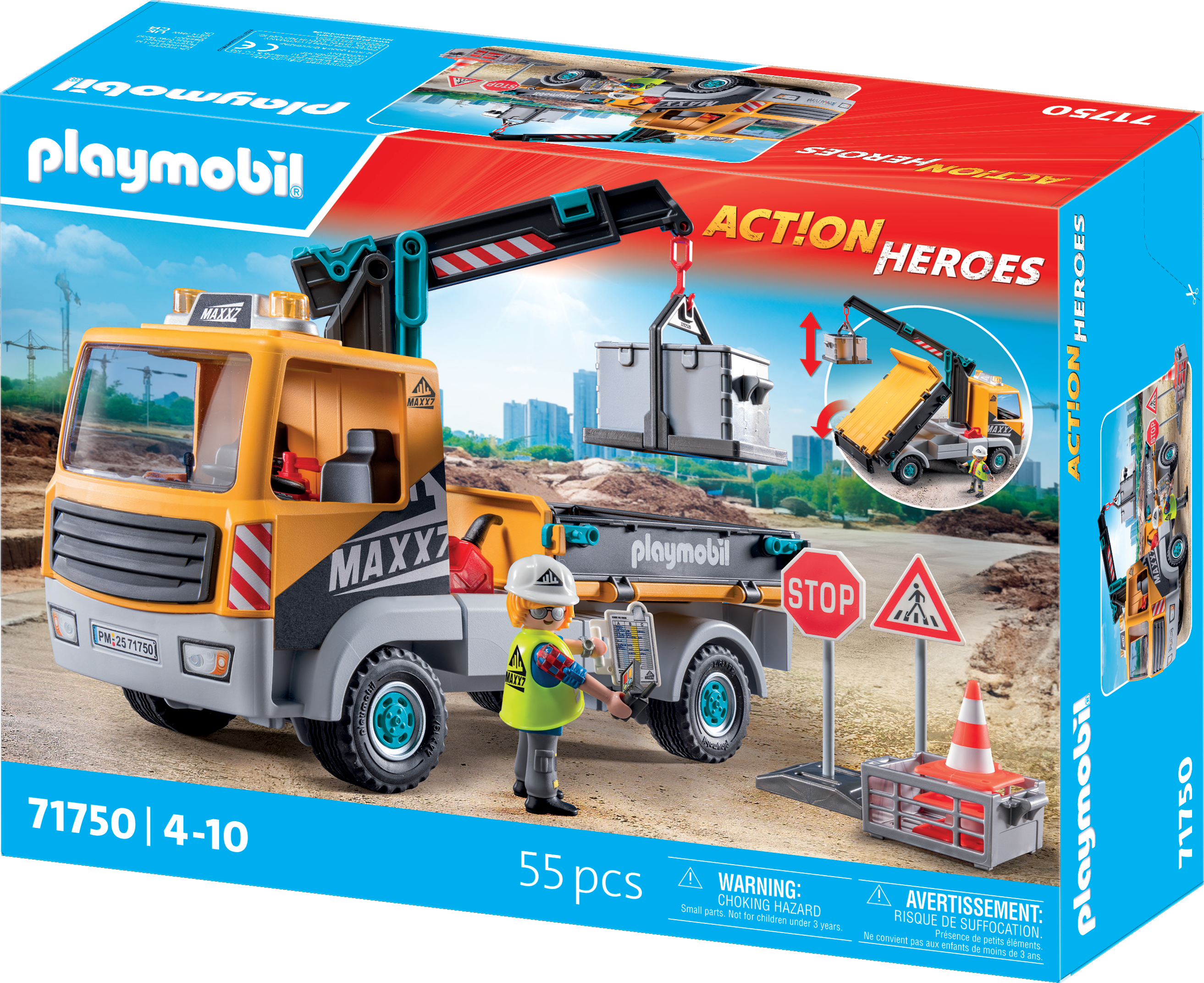 PLAYMOBIL 71750 - Action Heroes - Camion da Cantiere con Gru