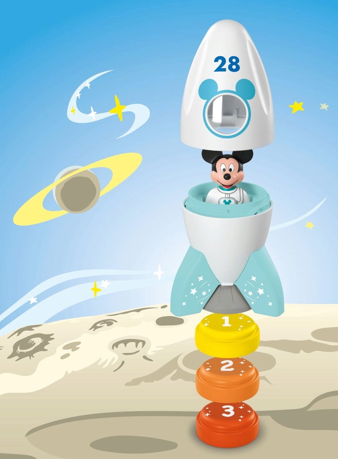 Contenuto: 1 Topolino, 1 razzo, 3 blocchi impilabili.