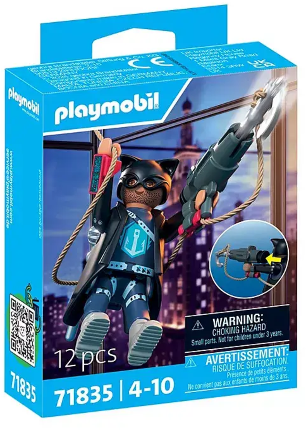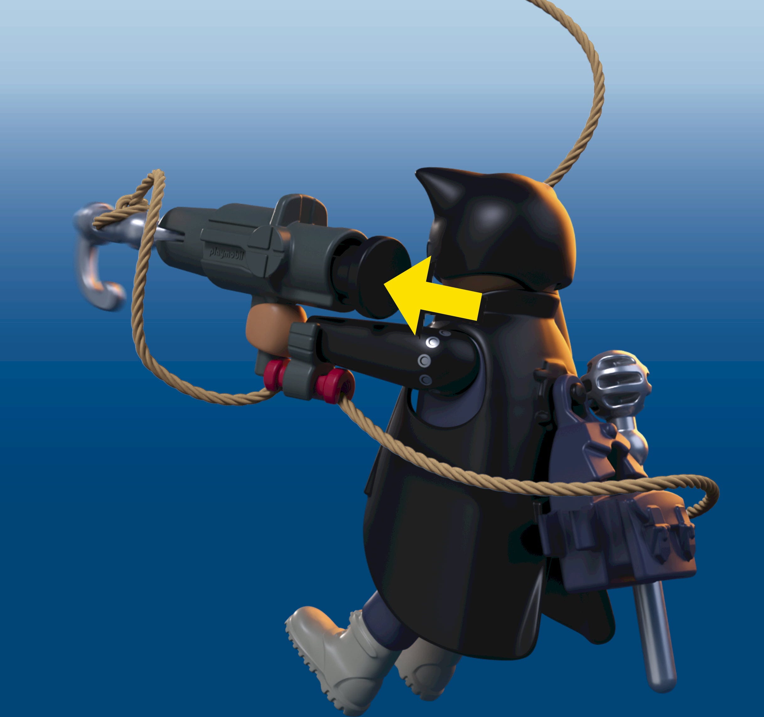 Di notte, a PLAYMOPOLIS, appare l’Eroe dell’oscurità! Con il rampino si muove sui tetti e, grazie al braccio computer e agli accessori, affronta ogni missione segreta. Il playset PLAYMOBIL include un personaggio Heroes da collezione e vari elementi per avventure sotto copertura.