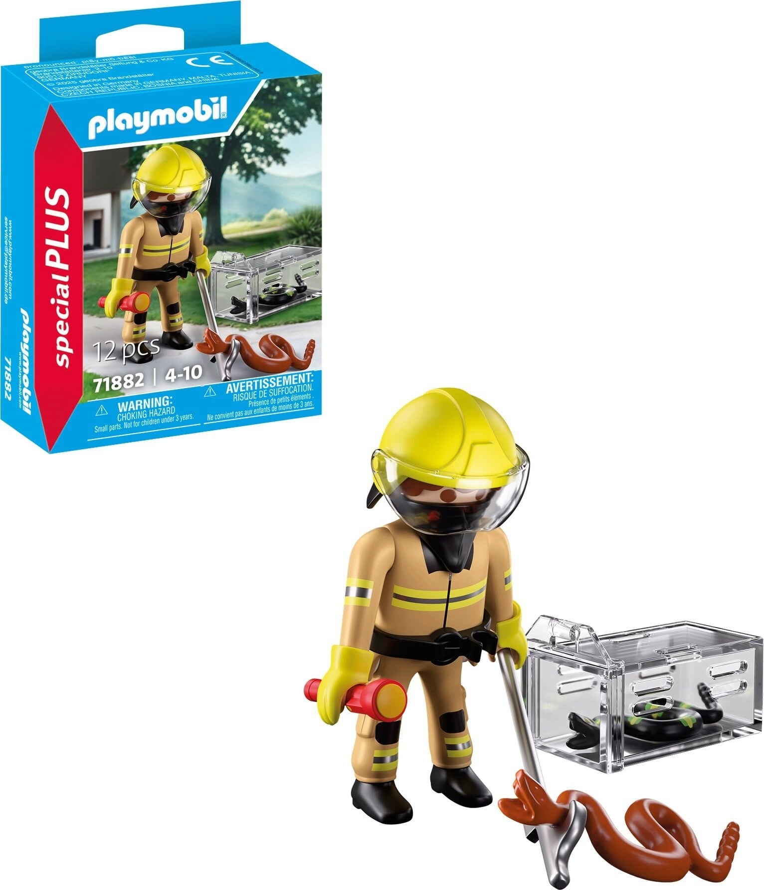 Contenuto: 1 pompiere con casco, 2 serpenti, 1 gancio, 1 scatola di trasporto trasparente