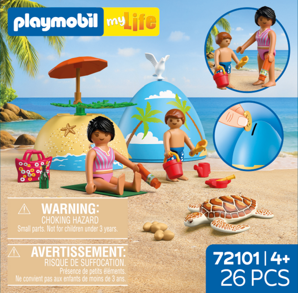 Sole, sabbia e mare: l'Uovo Gioco: Vacanze al Mare di PLAYMOBIL porta la vacanza direttamente nella cameretta dei bambini! Mamma e figlio si divertono in spiaggia insieme, costruiscono castelli di sabbia e scoprono una tartaruga marina con le sue uova, per avventure speciali all'interno dell'uovo.