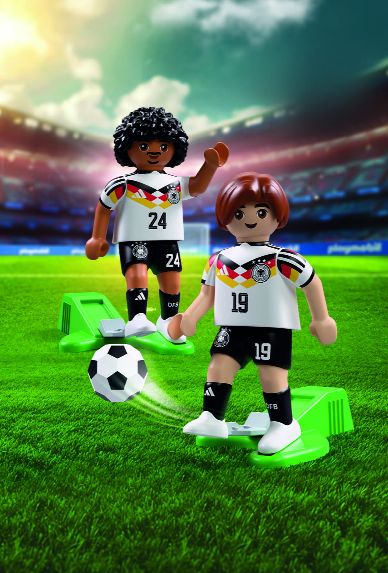 Pronti per i Mondiali del 2026? Con questo set PLAYMOBIL potrai portare velocità, abilità e un pezzo dei Mondiali direttamente a casa. Grazie agli elementi mobili e ai tiri snodabili, ogni tiro sarà vincente. Le figure dettagliate dei tuoi calciatori preferiti della nazionale tedesca non sono perfette solo da collezionare e da esporre, ma anche per giocare. Un must per tutti i tifosi della nazionale tedesca.