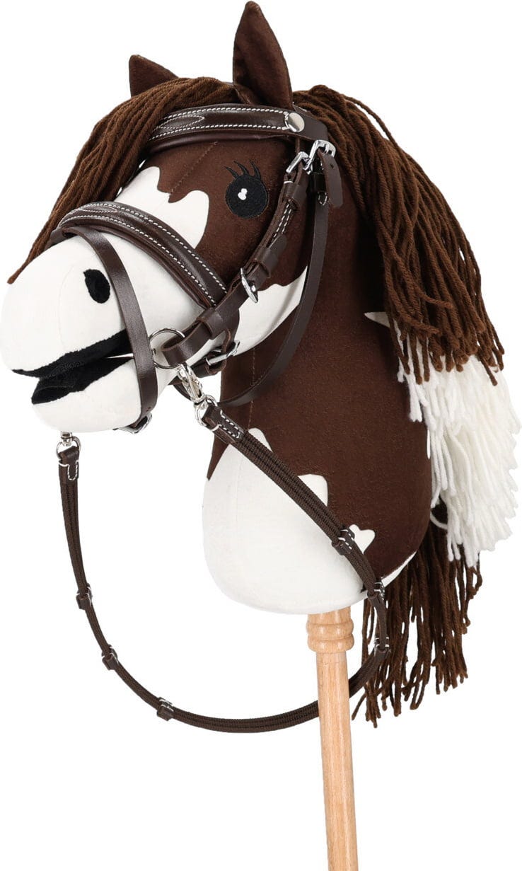 QHP Testiera con Cuciture di Lusso per Hobby Horse, Marrone Scuro