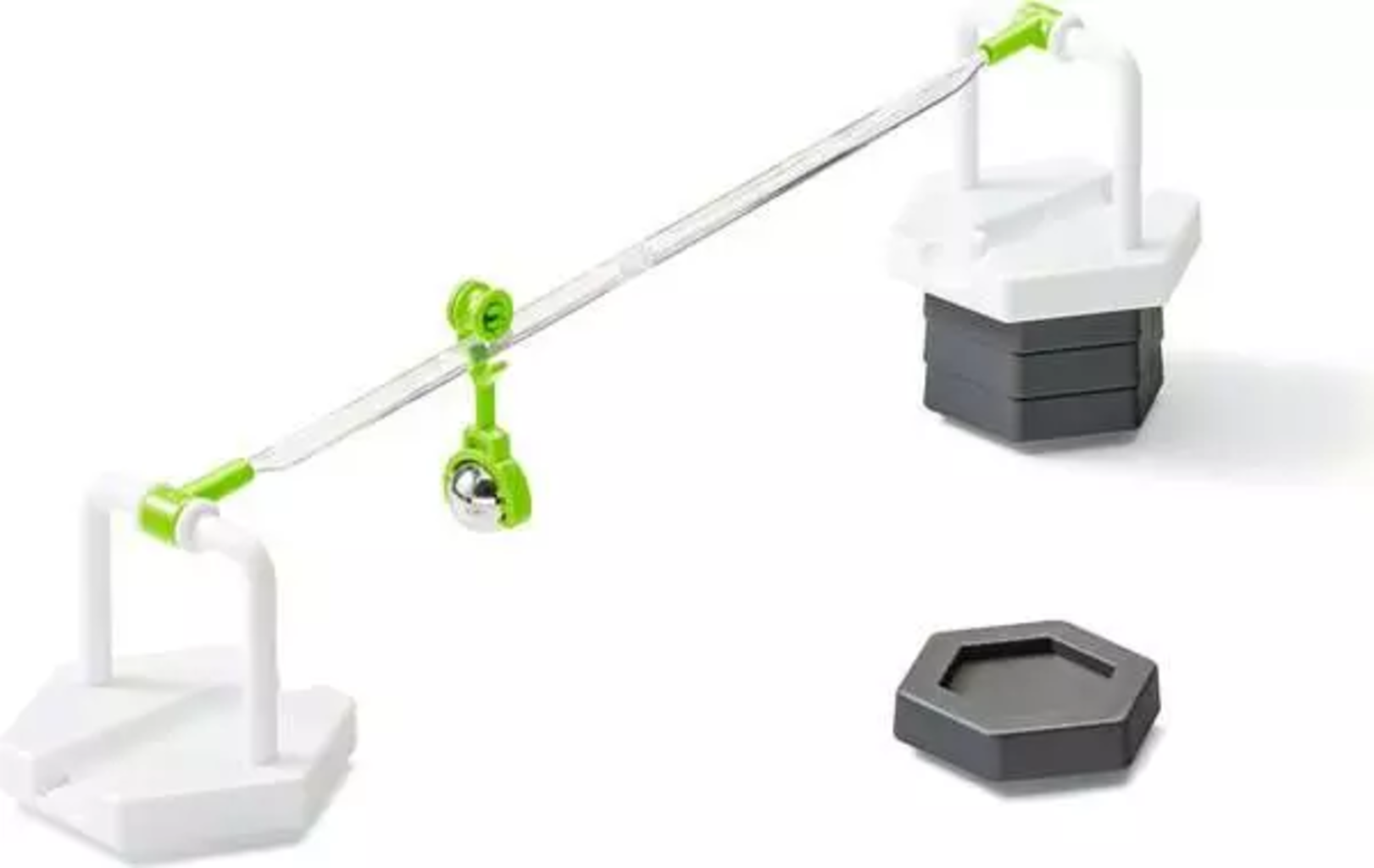 Il principio è sorprendente. Quando una biglia in arrivo attiva il carrello della zipline, questo scivola in sicurezza fino al punto di arrivo. Qui viene avviata una nuova biglia che prosegue il percorso. Grazie al sistema di supporto innovativo, il trasporto rimane sempre stabile. I bambini imparano a sfruttare i dislivelli per introdurre movimento e dinamica in tutto l'universo GraviTrax.