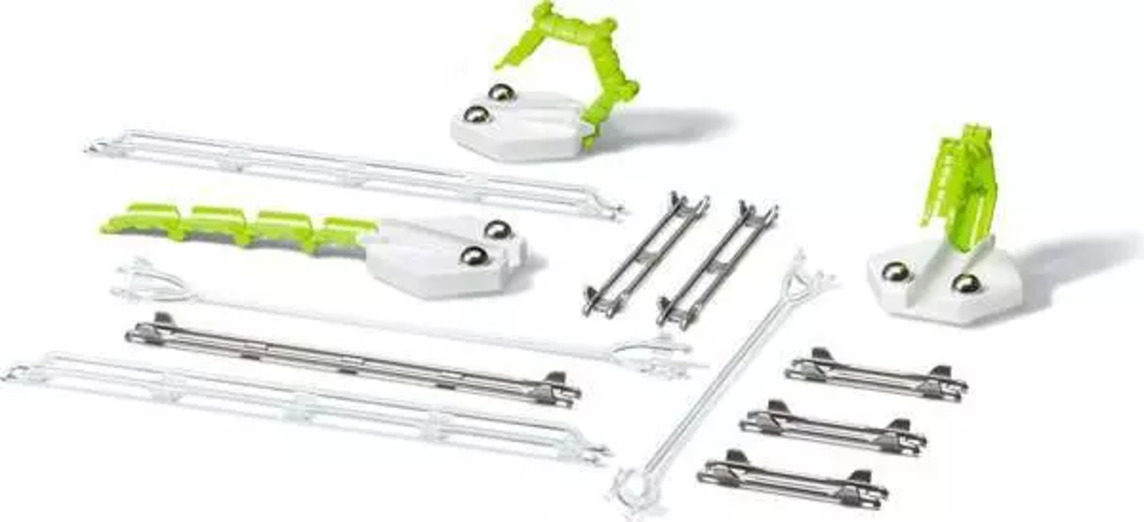 Espandi l'orizzonte della tua pista per biglie. Con la GraviTrax Extension Bridges, puoi creare collegamenti spettacolari tra parti del percorso anche molto distanti. Questa estensione è perfetta per giovani architetti che vogliono progettare in grande e colmare i vuoti del tracciato in modo scenografico.