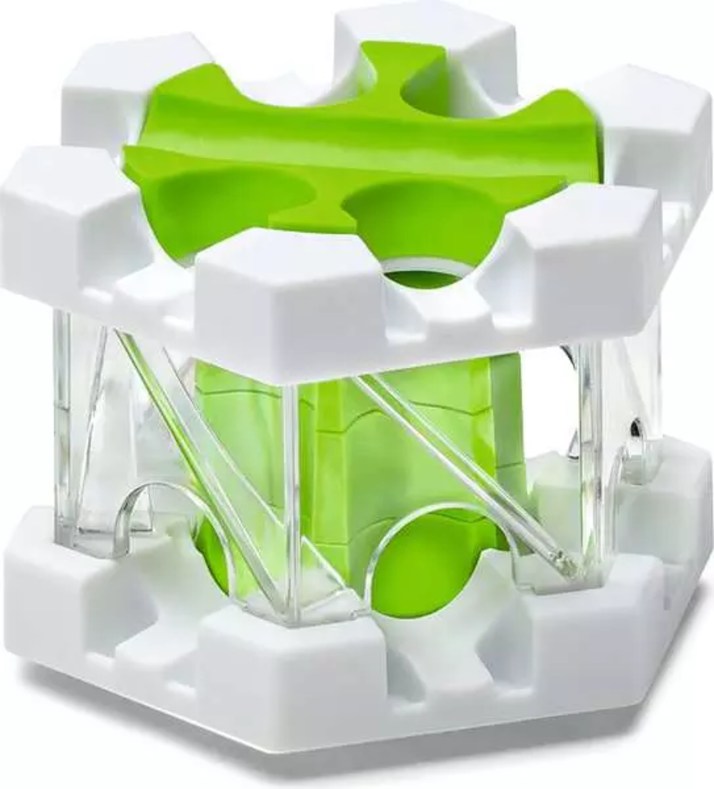 La Helix rende il percorso più “vivace”. Quando una biglia entra nell'elemento, ne esce su un livello più basso. La particolarità è l'elevata capacità, perché fino a sei biglie possono attraversare l'elemento contemporaneamente. I bambini imparano così a progettare piste più compatte e strategiche, gestendo al meglio il flusso delle biglie. Questo rafforza il pensiero spaziale e rende osservabili i collegamenti fisici a ogni passaggio.