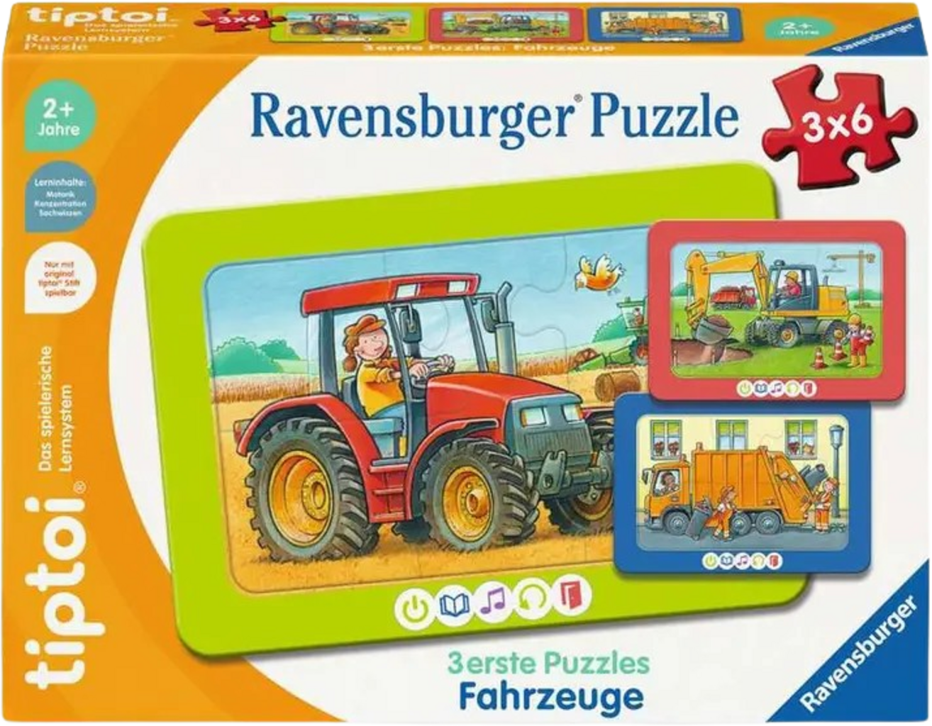 Questo set di puzzle tiptoi® è l'introduzione ideale al mondo tiptoi® e dà vita a tre popolari veicoli in modo interattivo per bambini dai 2 anni in su.
