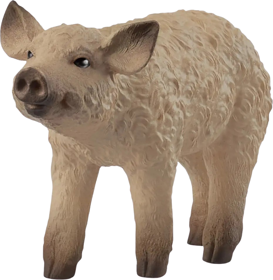 Il maialino Mangalica è un adorabile cucciolo della robusta razza suina che si distingue per il suo pelo lanoso. I bambini possono abbinarlo al maiale Mangalica adulto per ricreare la vita in fattoria. Con la sua pelliccia soffice e la sua natura curiosa, il maialino diventerà presto il compagno preferito in qualsiasi mondo di gioco pieno di avventure.