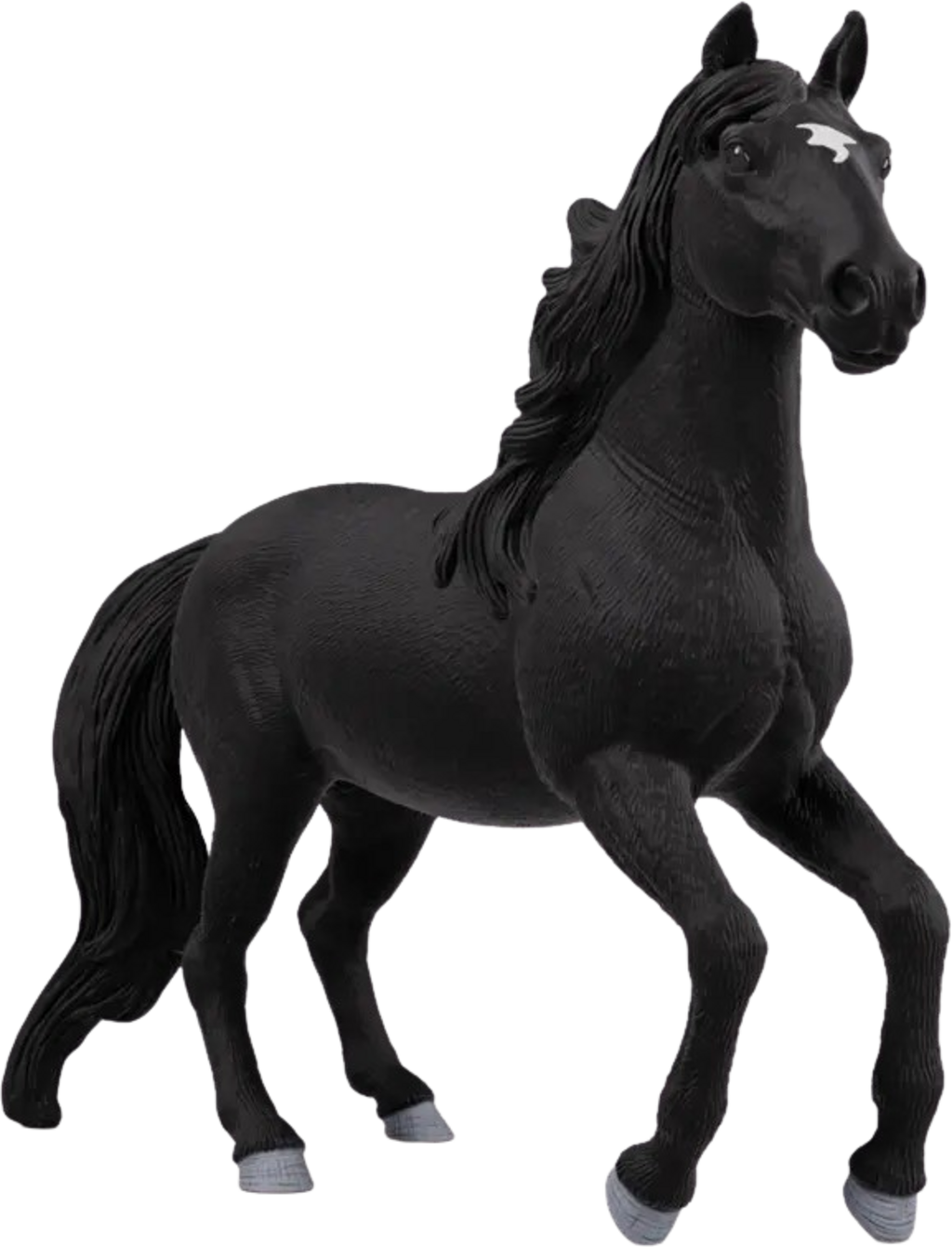 Lo stallone Lusitano è un vero maestro nell'arte di presentarsi. Con il petto fiero e la criniera fluente, si erge maestoso in tutta la sua altezza. Che si trovi nella camera da letto di un bambino o nella vetrina di un collezionista, la sua elegante presenza e la sua posa dinamica lo rendono il pezzo forte di qualsiasi mandria.