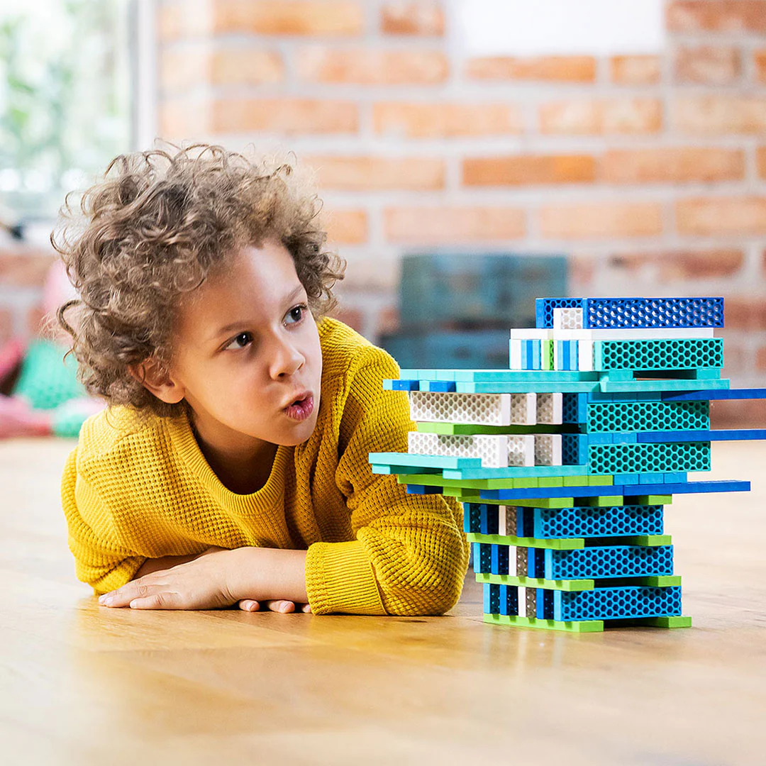 La Hello Box "Ocean Mix" di Bioblo porta l'oceano direttamente nella cameretta dei bambini, o ovunque vogliate costruire. Con 100 mattoncini in splendide tonalità di blu e verde, oltre al bianco, la fantasia può davvero prendere il volo. Che si tratti di onde, barche, mondi sottomarini o idee di costruzione completamente nuove: la scatola offre un divertimento creativo senza fine e una qualità sostenibile per costruttori di tutte le età.