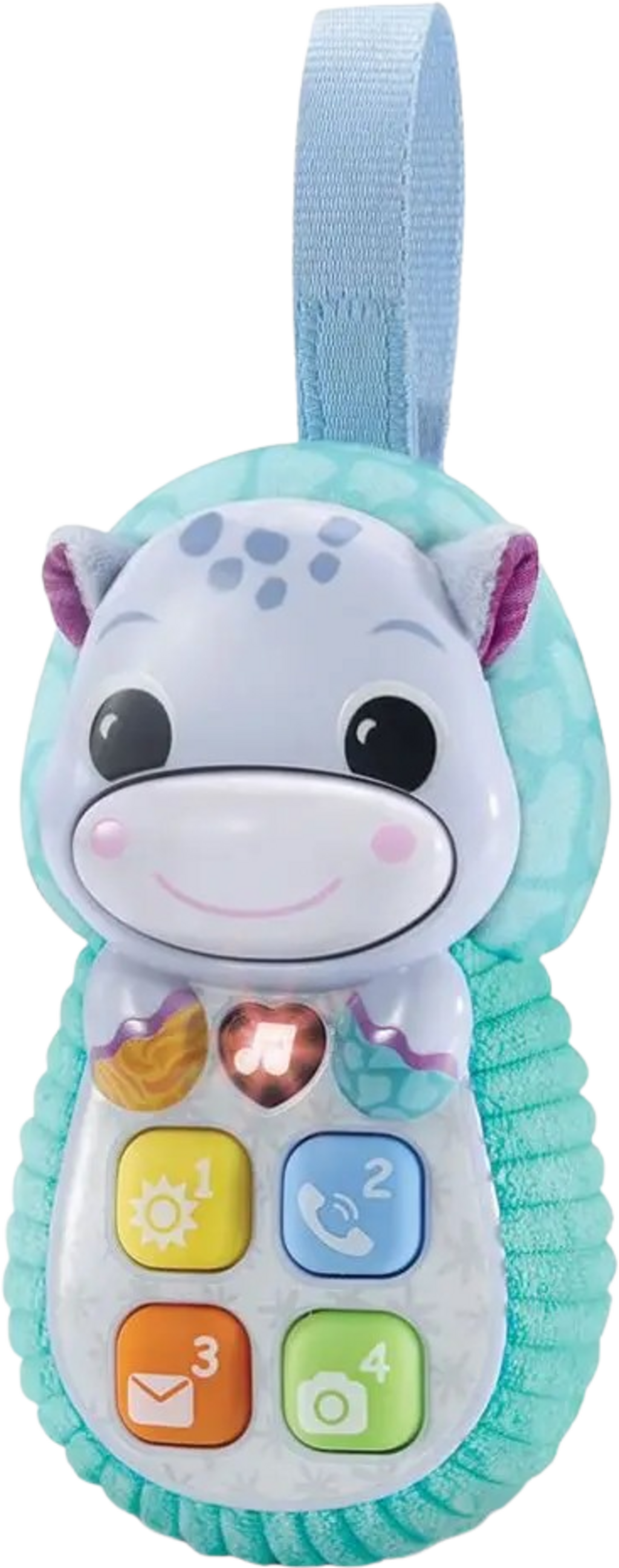 Con il cellulare Hippo, i bambini dai 6 mesi in su possono esercitarsi a telefonare, scoprire melodie e ripetere frasi in modo giocoso. I pulsanti luminosi, i suoni divertenti e le pratiche opzioni di fissaggio rendono questo giocattolo il compagno ideale a casa o in viaggio.
