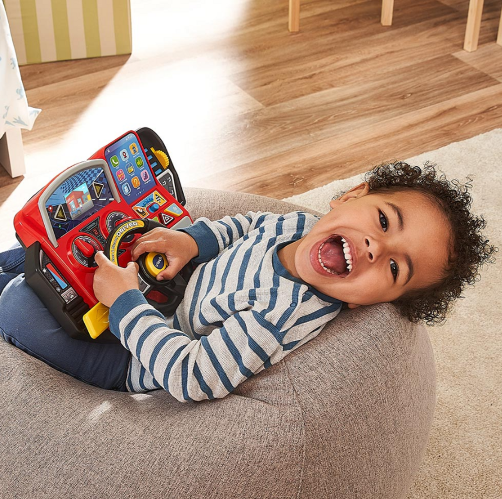 Il volante didattico della linea Ready, Set, School combina il gioco di ruolo con contenuti didattici adatti all'età. Attraverso diverse modalità di gioco e comandi interattivi, i bambini vengono introdotti in modo giocoso ai concetti base del traffico e dell'apprendimento. Il design realistico incoraggia l'imitazione di situazioni quotidiane e garantisce momenti di gioco vari e divertenti.