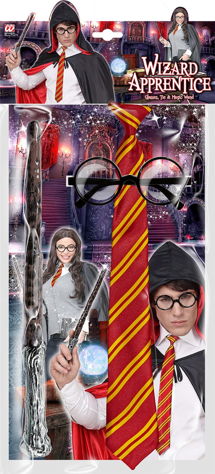 La scuola di magia apre le sue porte e ti invita a unirti alla classe! Con questo set si è preparati a ogni evenienza. La bacchetta magica è ovviamente d'obbligo, la cravatta è nei colori della scuola e gli occhiali ti renderanno più facile decifrare le formule magiche.