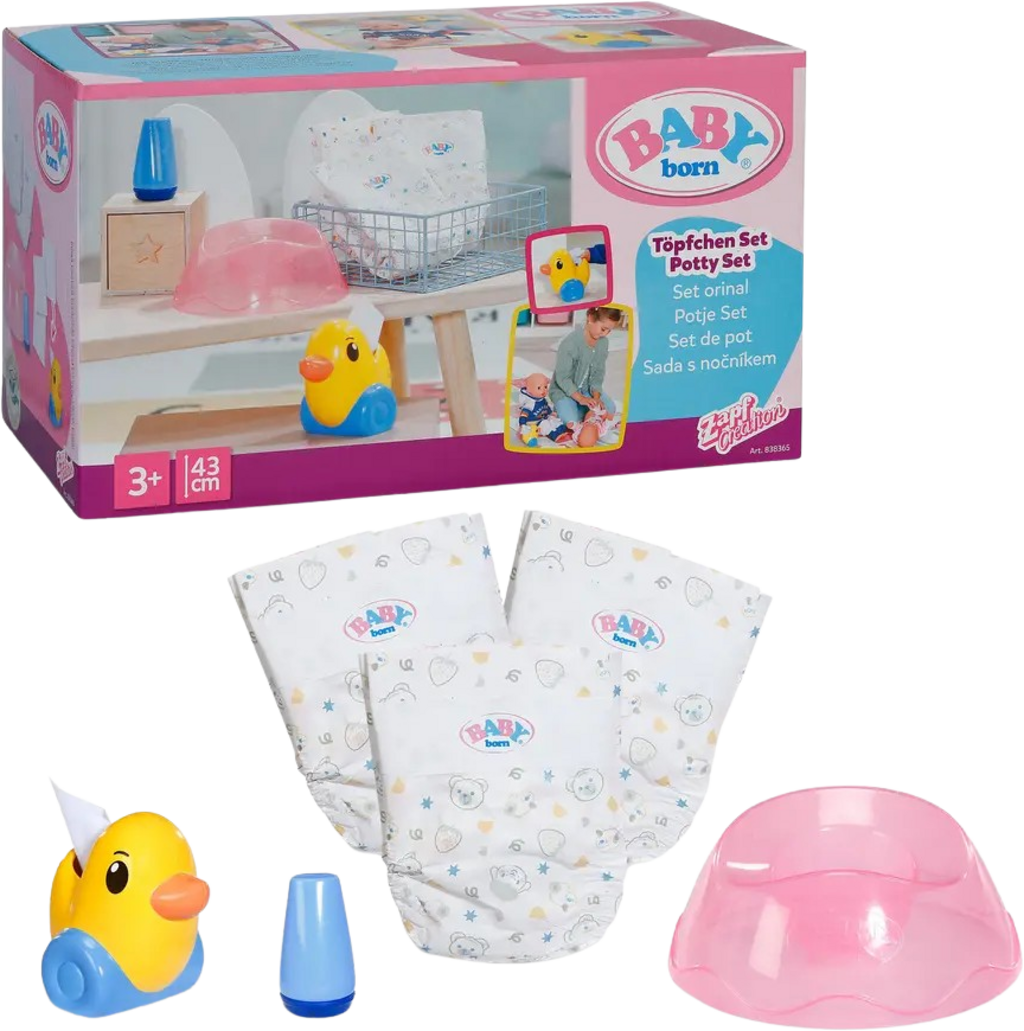 Il vasino BABY born porta con amore l'importante tema dell'educazione al vasino nel gioco delle bambole. Il vasino è progettato pensando ai bambini, è facile da usare e si adatta a bambole fino a 43 cm.