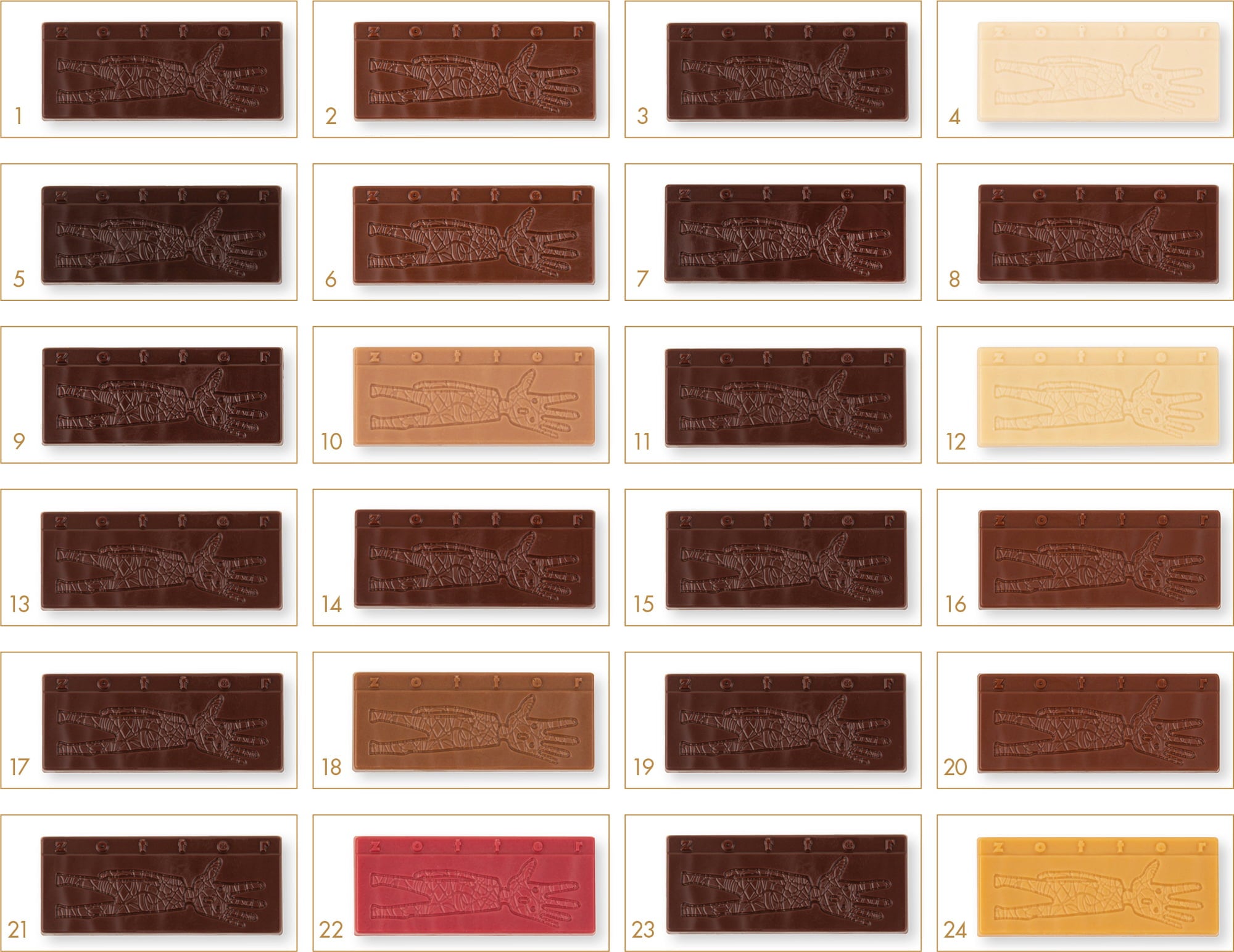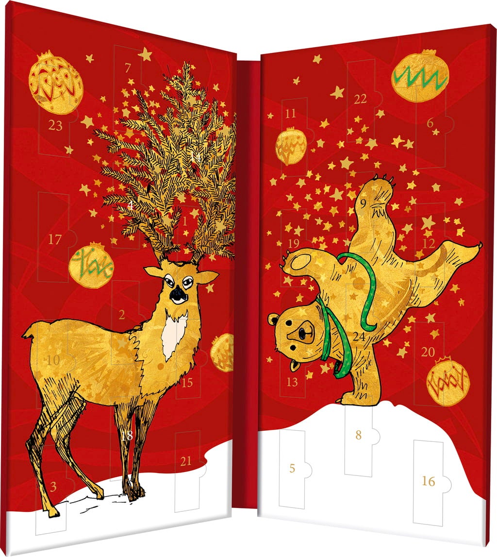 Il calendario dell'Avvento Zotter Labooko trasforma l'Avvento in un tour mondiale del cioccolato e fa venir voglia che duri più di 24 giorni! Dietro ogni porticina c'è un Labooko mini con specialità di cioccolato in diverse intensità e con cacao originale proveniente da diversi paesi. Sono incluse anche le varietà dolci e fruttate.